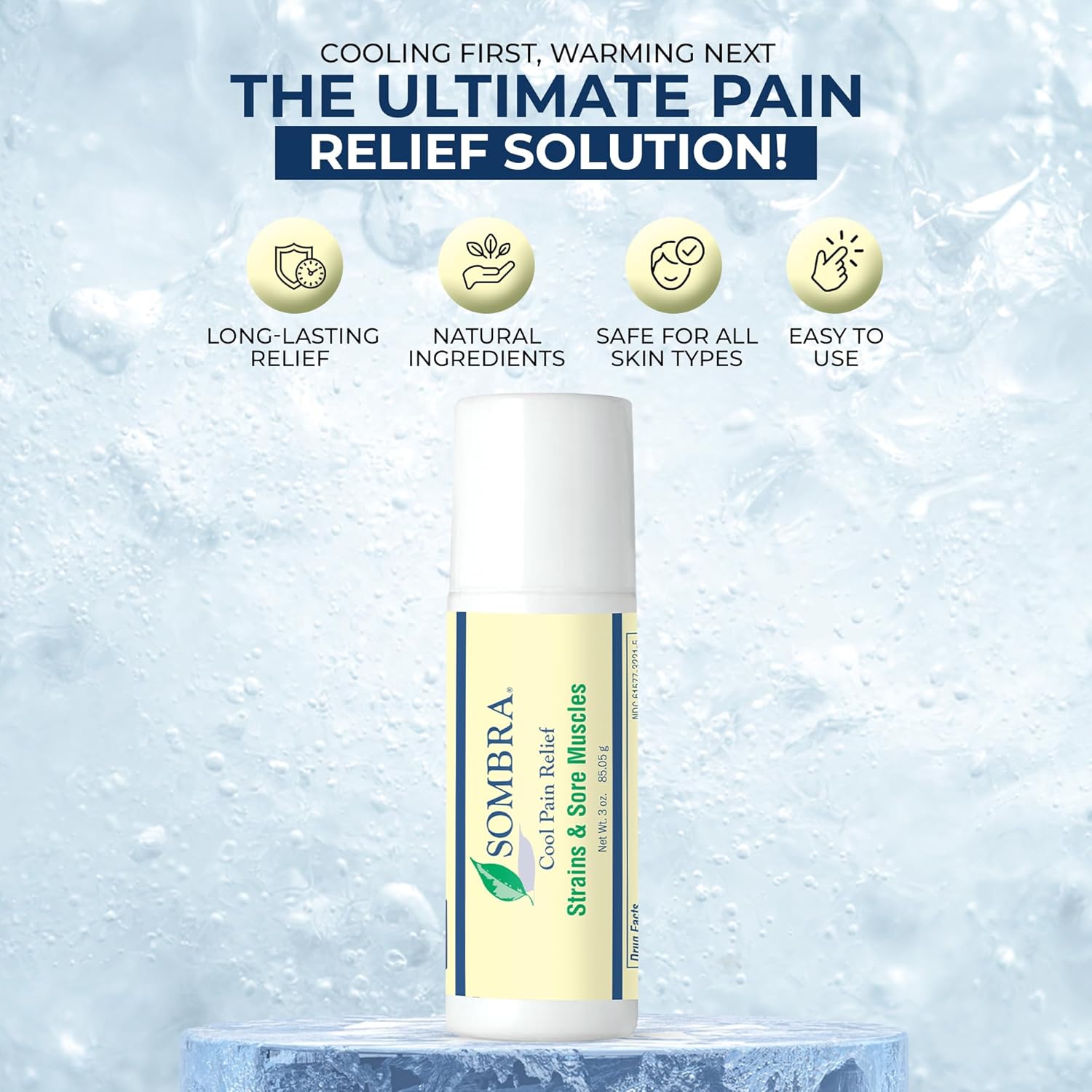 Sombra Cool Pain Relief Gel Cold Pain Relief for Swelling, Growing Pains, Soreness, Post-Workout, Vegan Formula Free of Artificial Fragrances, Dyes, NSAID, Wax, Petroleum, Alcohol - 3oz Roll-On