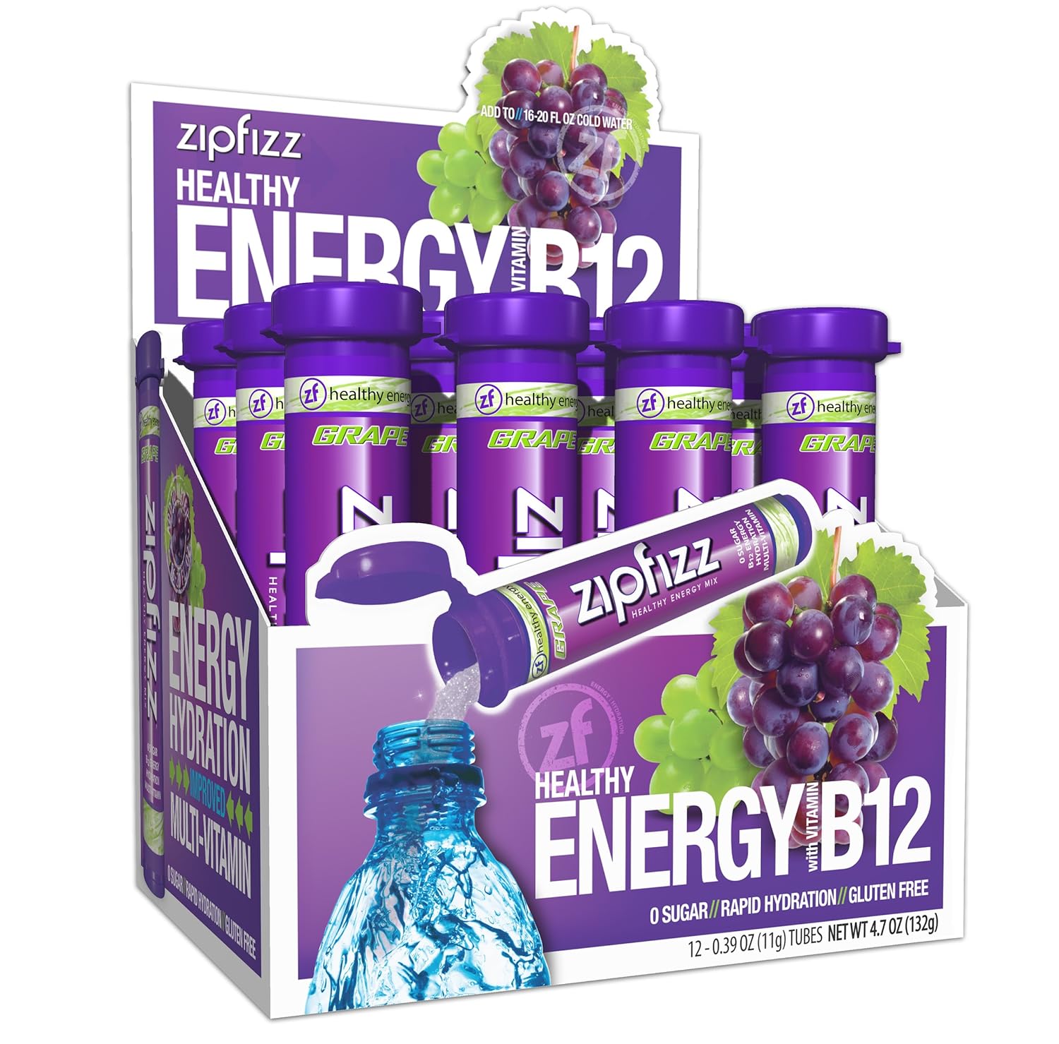 - Juicy Grape Flavor β Enjoy the sweet taste of sun-ripened grapes that will energize your body and mind. Simply add Zipfizz powder to 16-20 ounces of water or other non-carbonated beverage, shake, and enjoy!