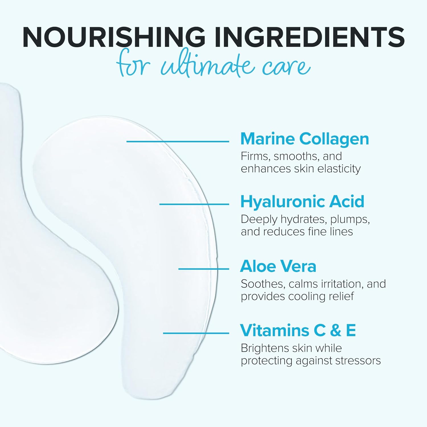 - COOL, SOOTHING RELIEF. When headaches, allergies, late nights or fatigue cause your eyes to look tired, these clean collagen eye pads moisturize, plump and add nutrients to the delicate under-eye zone, creating a more relaxed and refreshed appearance.