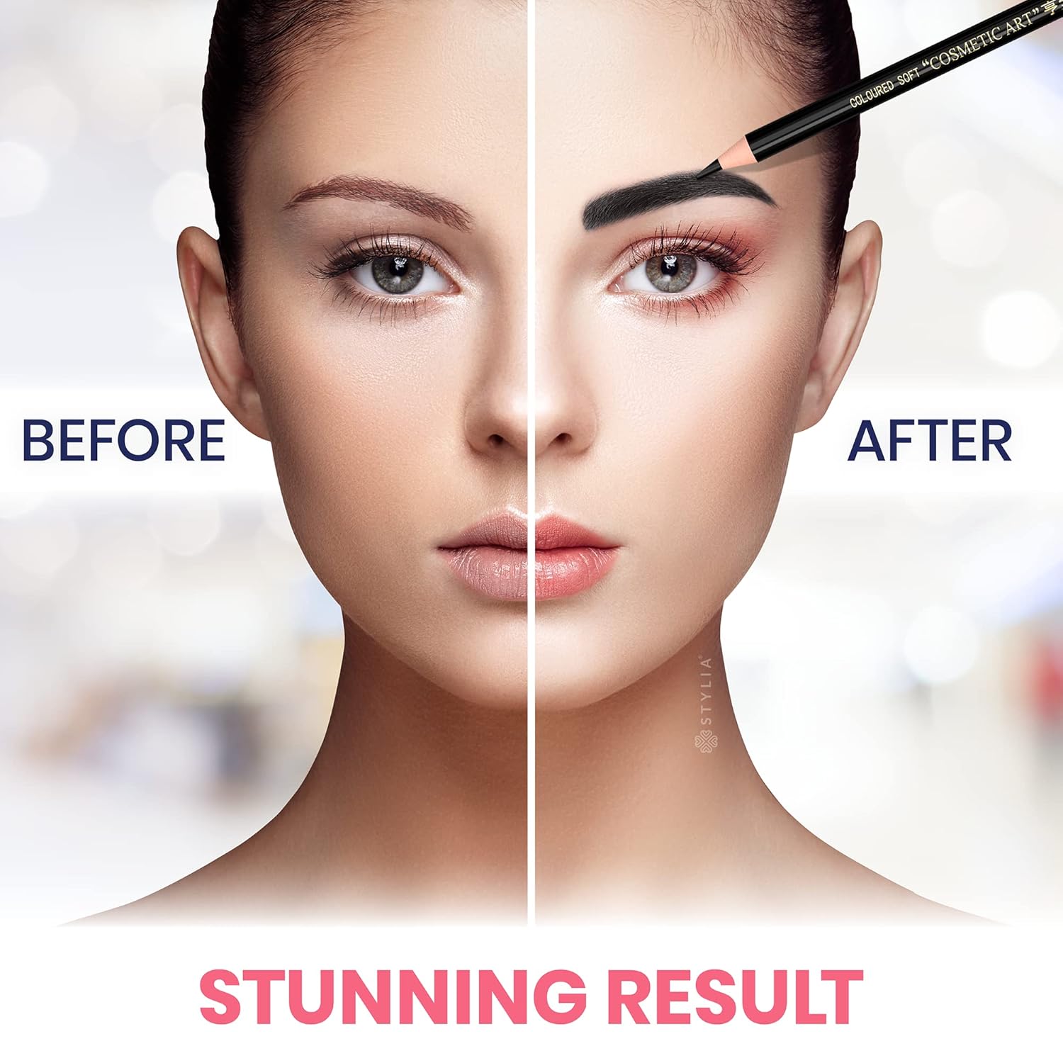Stylia Waterproof Eyebrow Pencils For Women – Long-Lasting Microblading Supplies Brow Pencil, Perfect for Eyebrow Shaper, Filling & Defining Natural-Looking Brow - (12PC Black)