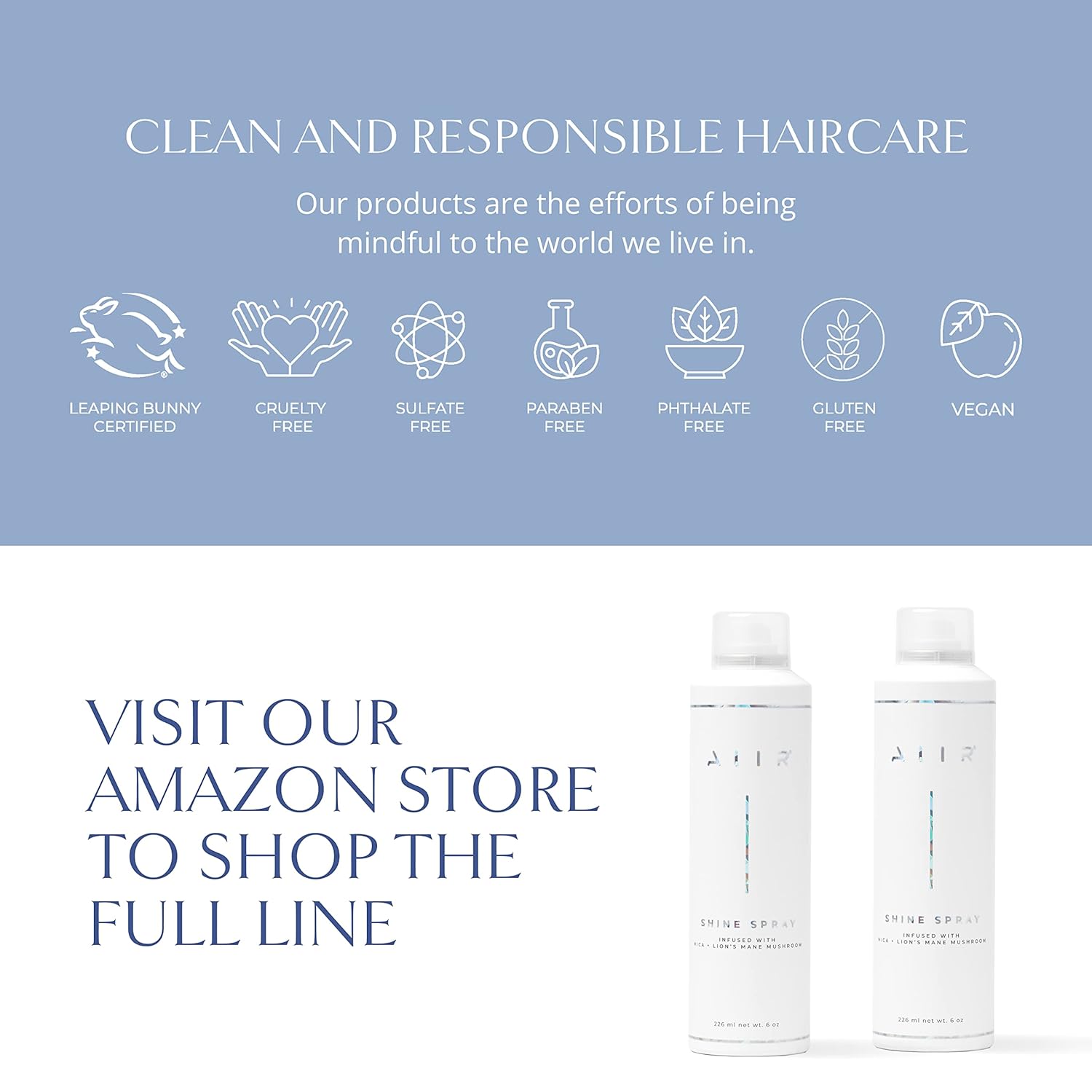 AIIR Shine Spray -Smoothing Spray for Glossy Sleek Hair, Humidity and Frizz Shield Spray, Gloss Spray, Lightweight Spray Coats and Protects Hair, Enhance Shine & Color with Reflect, 6 oz
