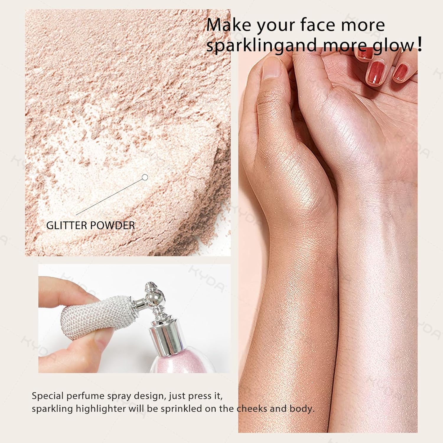 KYDA Highlighter Powder Spray, High Gloss Glitter Spray, Shimmer Sparkling Powder Makeup, for Face and Body Glitter Cosmetic-Soft Pink