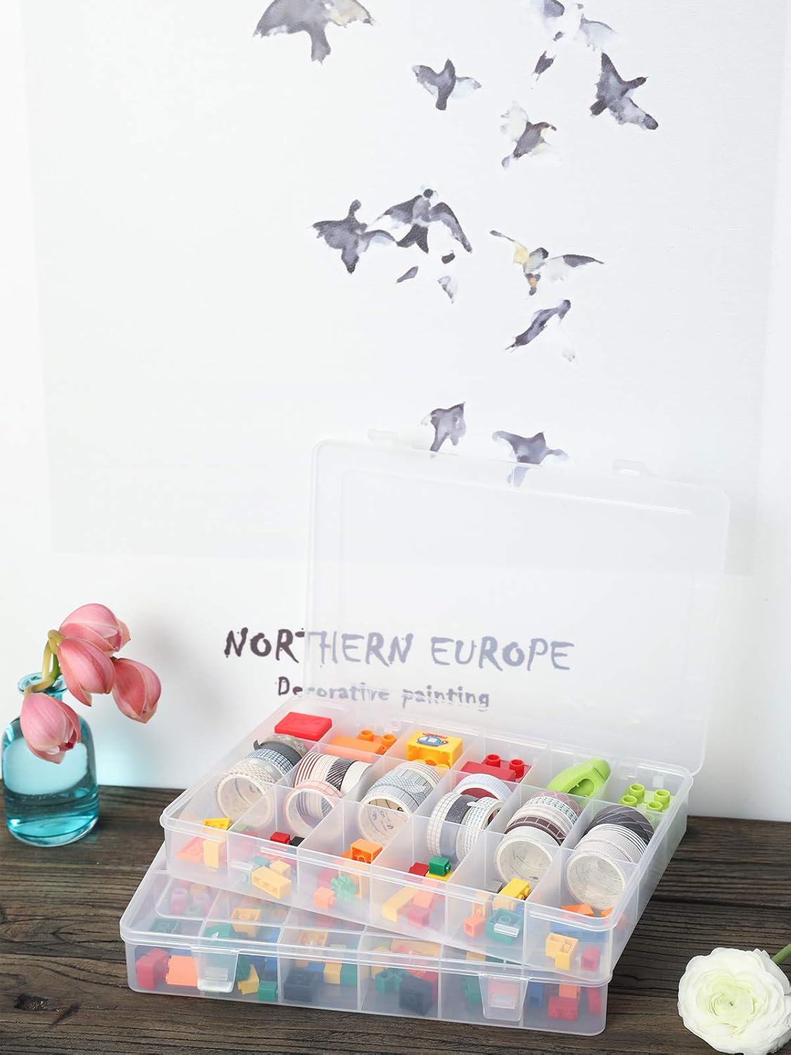 2pack 18 Grids Unadjustable Clear Plastic Organizer Box plastic tray with dividers clear tackle storage containers for snackle jewelry