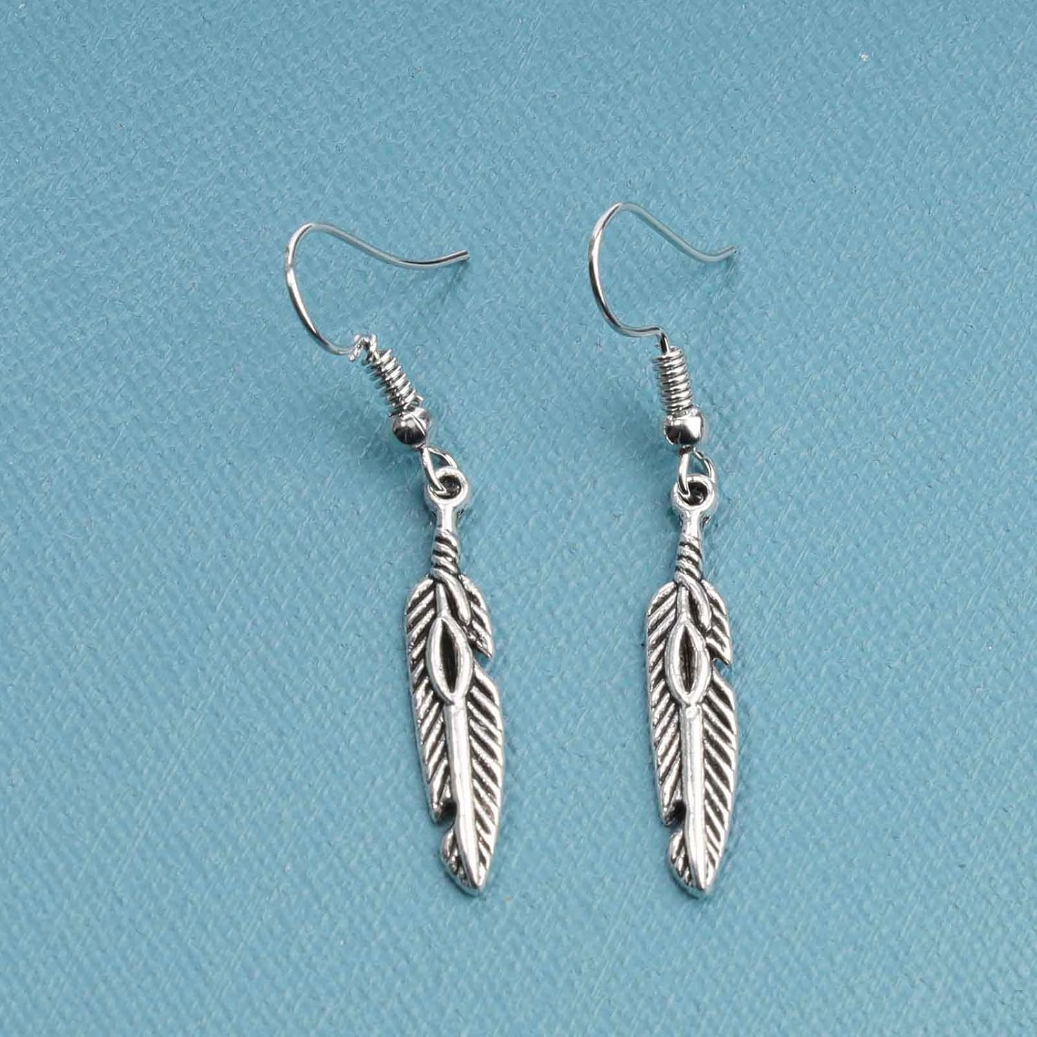 Vintage Etched Feather Earrings Silver Feather Dangle Earrings Little Feather Charm Earrings Boho Earrings Jewelry for Women and Girls