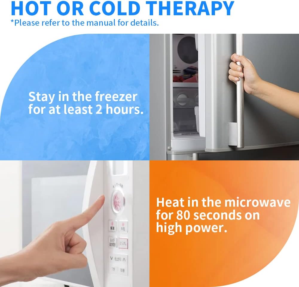 - HOT & COLD COMPRESS: As cold pack, freezing ice gel pack in freezer for at least 2 hours. For warm compress, heat 80 seconds in microwave to to reach a comfortable temperature. Please use them on your back, shoulder, neck, knee or anywhere else you need an ice pack.