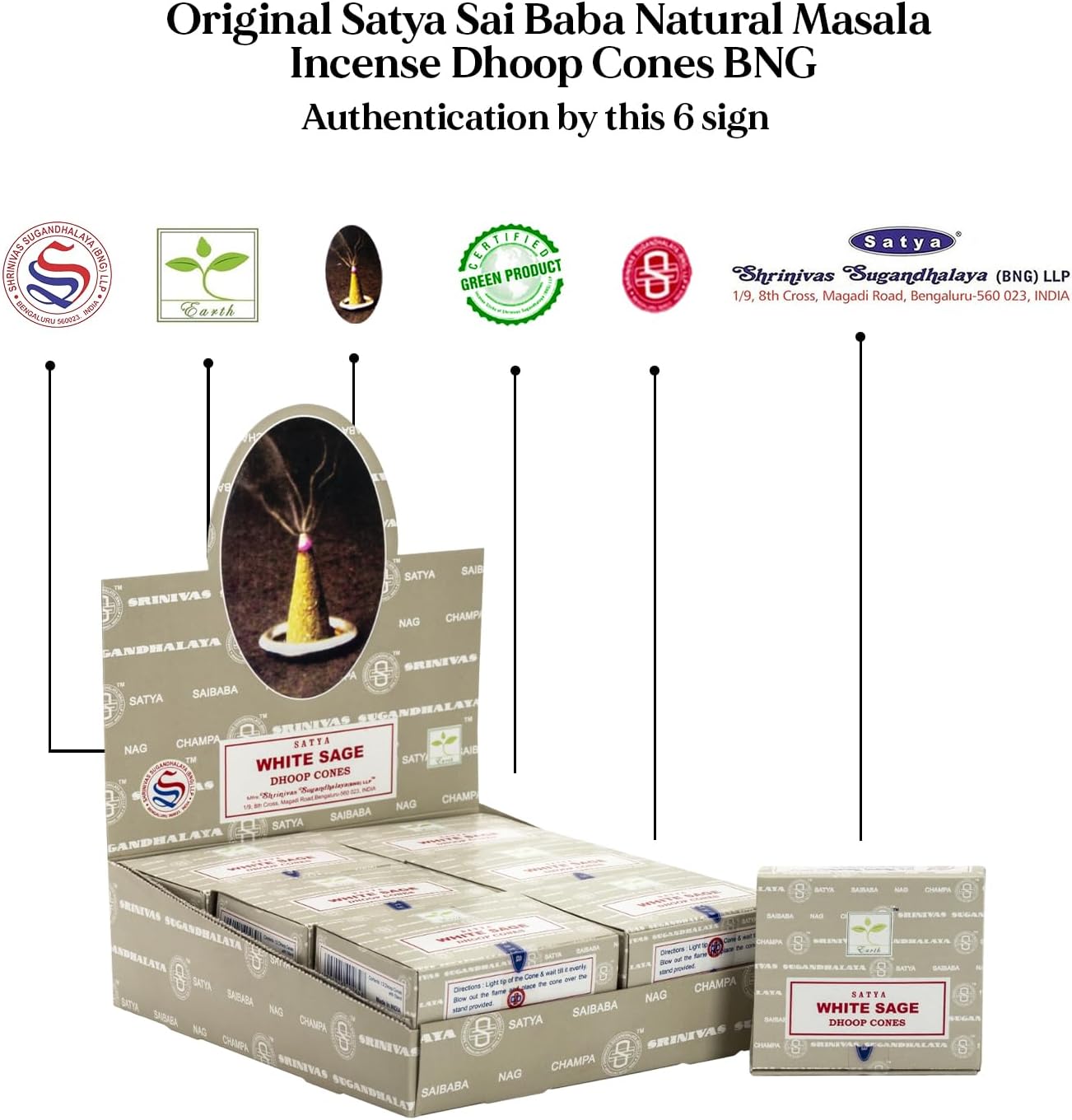 Satya Sai Baba White Sage Original Earth Marked Natural Masala Incense 144 Dhoop Cones in Pack of 12 Boxes | Best for Prayer, Meditation and Relaxation