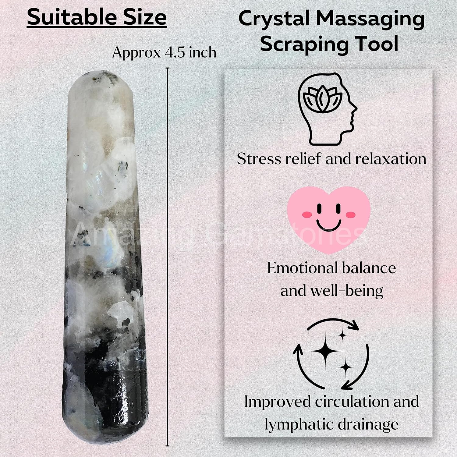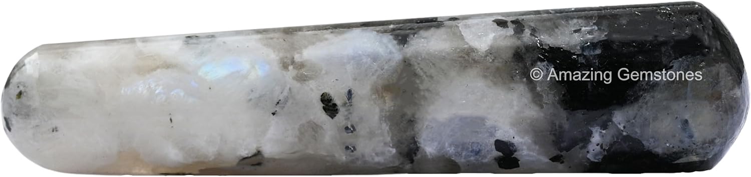 Amazing Gemstone Rainbow Moonstone Crystal Wand Massage Stick - Pelvic Wand Gua Sha for Adults - Crystals and Healing Stones Massage Wands for Adults Gifts (Smooth)