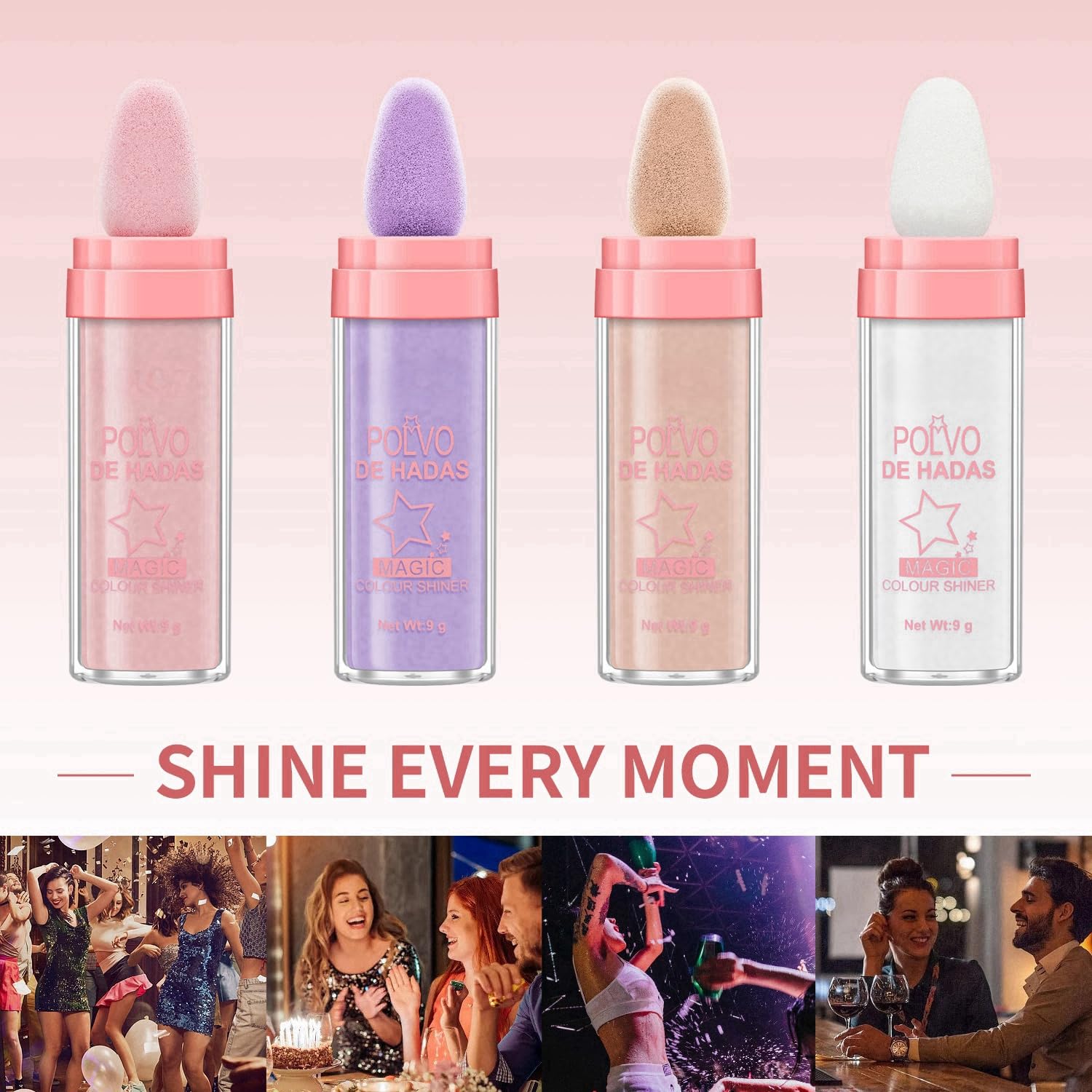 - 【Brightening Fairy Highlighter Powder】Polvo De Hadas a Tiktok latest trend shimming cosmetics. Contains pearlescent particles that reflect light for a radiant finish,Can be used on face, eyes, clavicle, and full body for a three-dimensional contouring effect.
