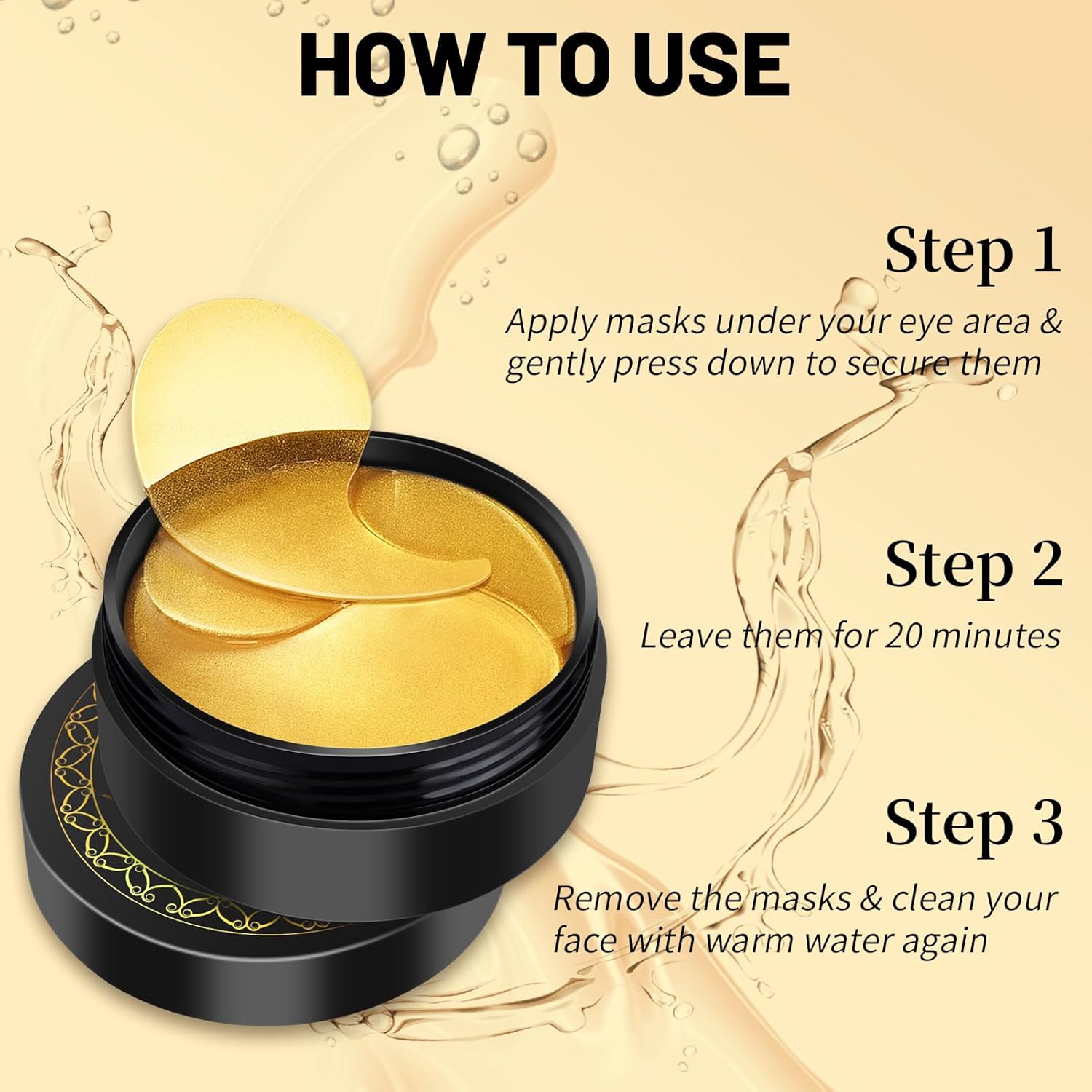 - 【Easy Using & Fit All Skin】Just pick up the depuffing eye mask out of the packaging and apply it to your eye zone for about 15 minutes. Collagen eye mask Suitable for all type of skin including the most sensitive skin, fit for both women and men.