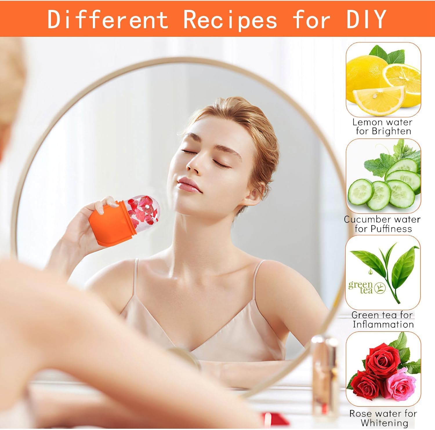 KOGITI Face Ice Roller & Mold - Beauty Facial Massage Tool for Puffiness Relief, Ice Cube Holder (New-Orange)