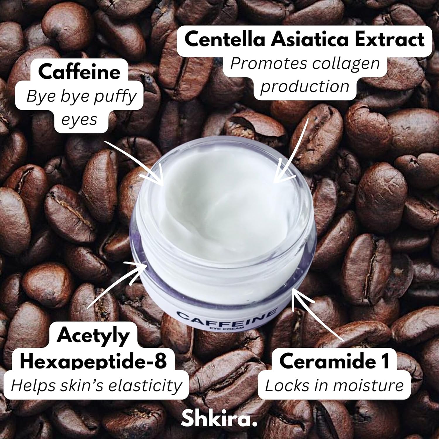 - WHAT ARE THE SPECIAL INGREDIENTS? 5% Caffeine, Hyualuronic Acid, Centela Asiatica Extract, Ceramide 1, Acetyl Hexapeptide- 8 Caffeine Eye Cream, No Retinol Eye Cream, Hyualuronic Eye Cream, Moisturizing Eye Cream, TikTok Viral Skincare, Botox In A Jar, Better Than Botox, Anti-aging eye cream