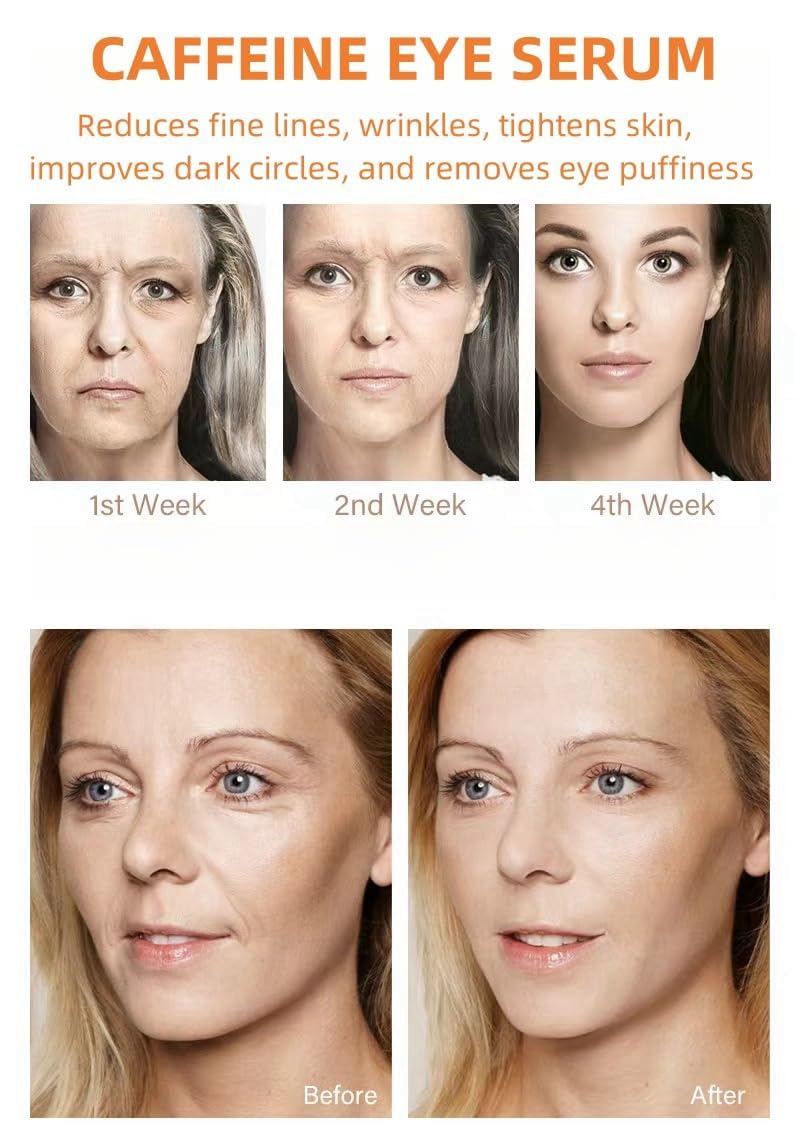 - 1. 5% Caffeine Eye cream: is targeted at the eye area to help reduce puffiness, improve dark circles, improve skin firmness, reduce fine lines and wrinkles, relieve eye fatigue, nourish your eyes, and make your eyes glow.