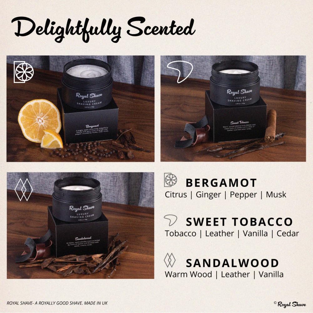 - BARBER APPROVED: Experience timeless grooming with Royal Shave Luxury Shaving Cream for Men, expertly crafted in Britain. The luxurious formula cushions the skin while providing a close, comfortable shave.
