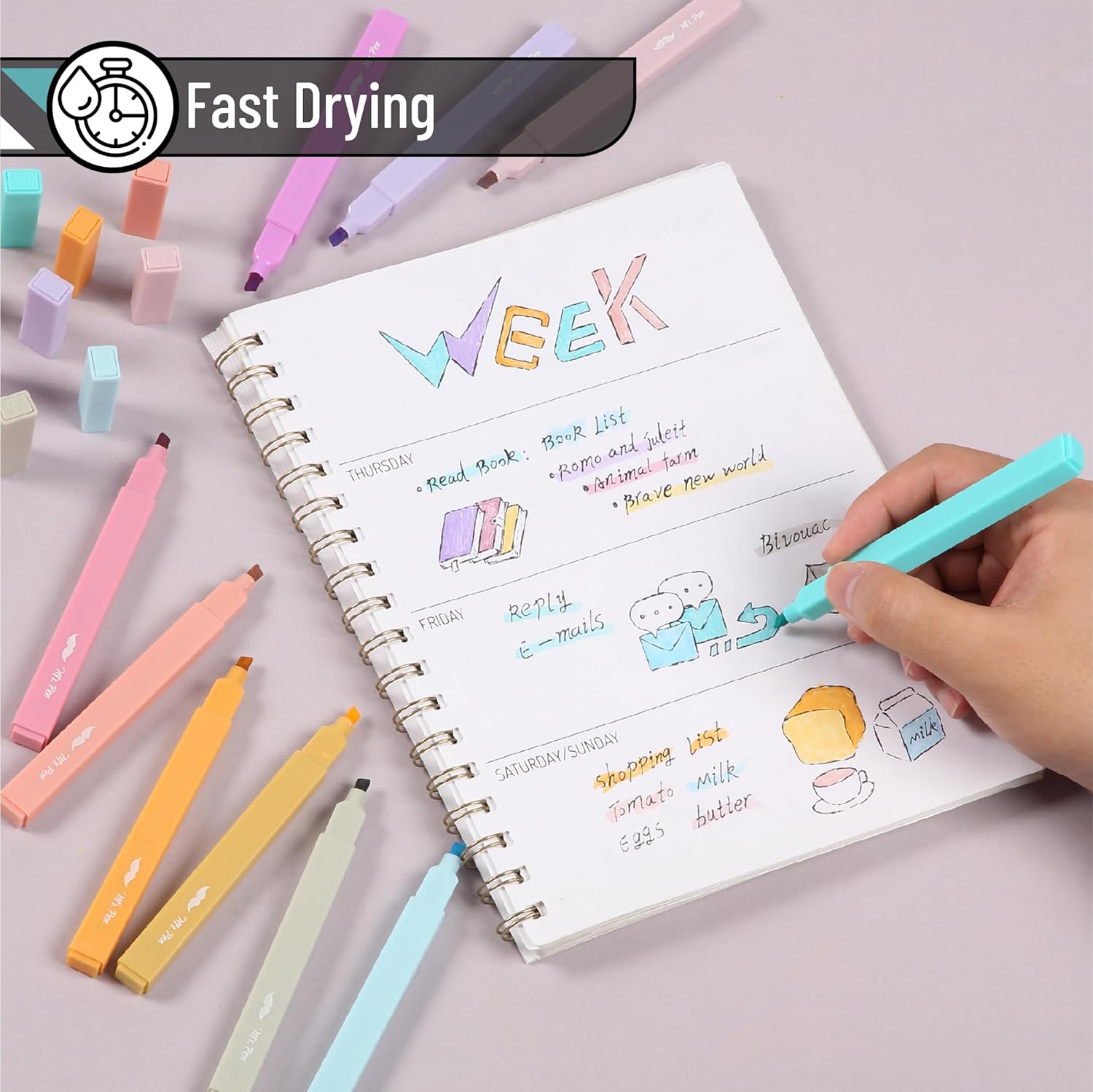 - Mr. Pen aesthetic highlighters feature a set of 10 elegant candy-colored pens, ideal for adding charm to your notes and projects.