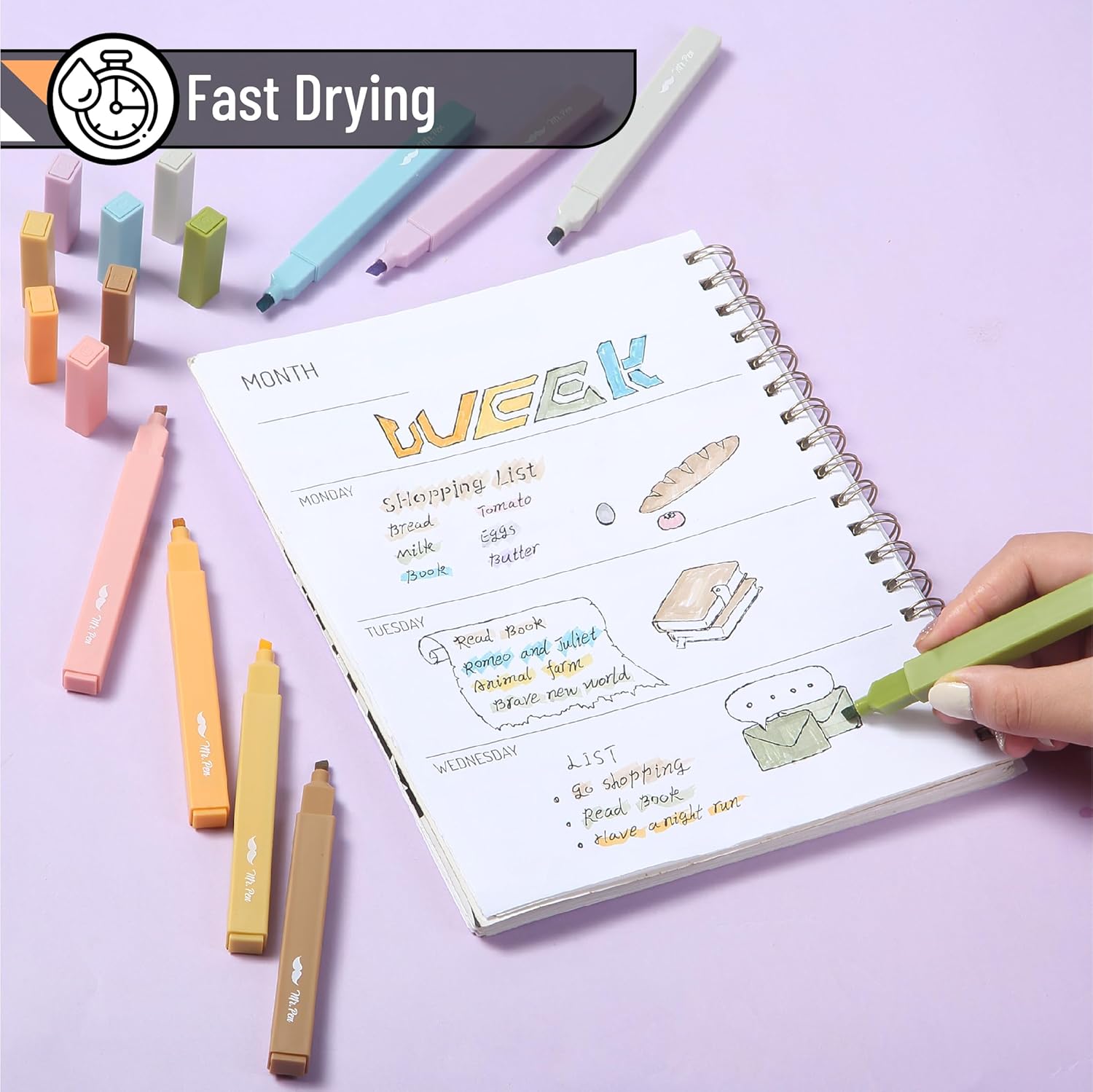 - Mr. Pen aesthetic highlighters come in a set of 8 earthy and calming colors, inspired by the natural beauty of a moss garden.