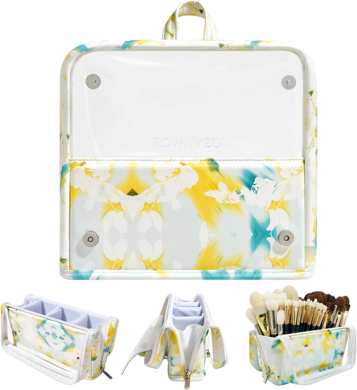 ROWNYEON Makeup Brush Bag, High Capacity Stand-Up Makeup Brush Holder, Travel Professional Cosmetic Bag Artist Organizer Bag Large Makeup Brush Case with Adjustable Divider (Brushes Not included)