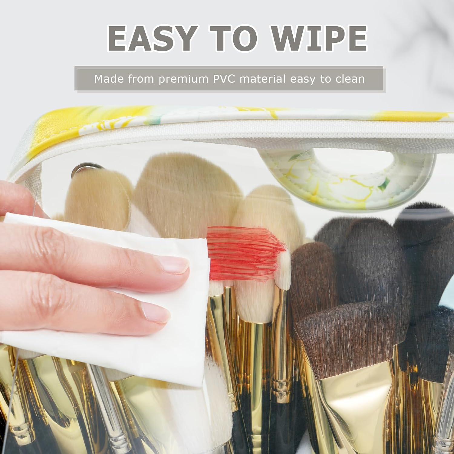 • High-quality Material: This Makeup Brush Bag choose high-quality waterproof fabric and visual TPU material. Make this makeup brush bucket bag not only waterproof and easy to clean, easy to find items, but also do not have to worry about long-term use will make it wrinkle and damaged.