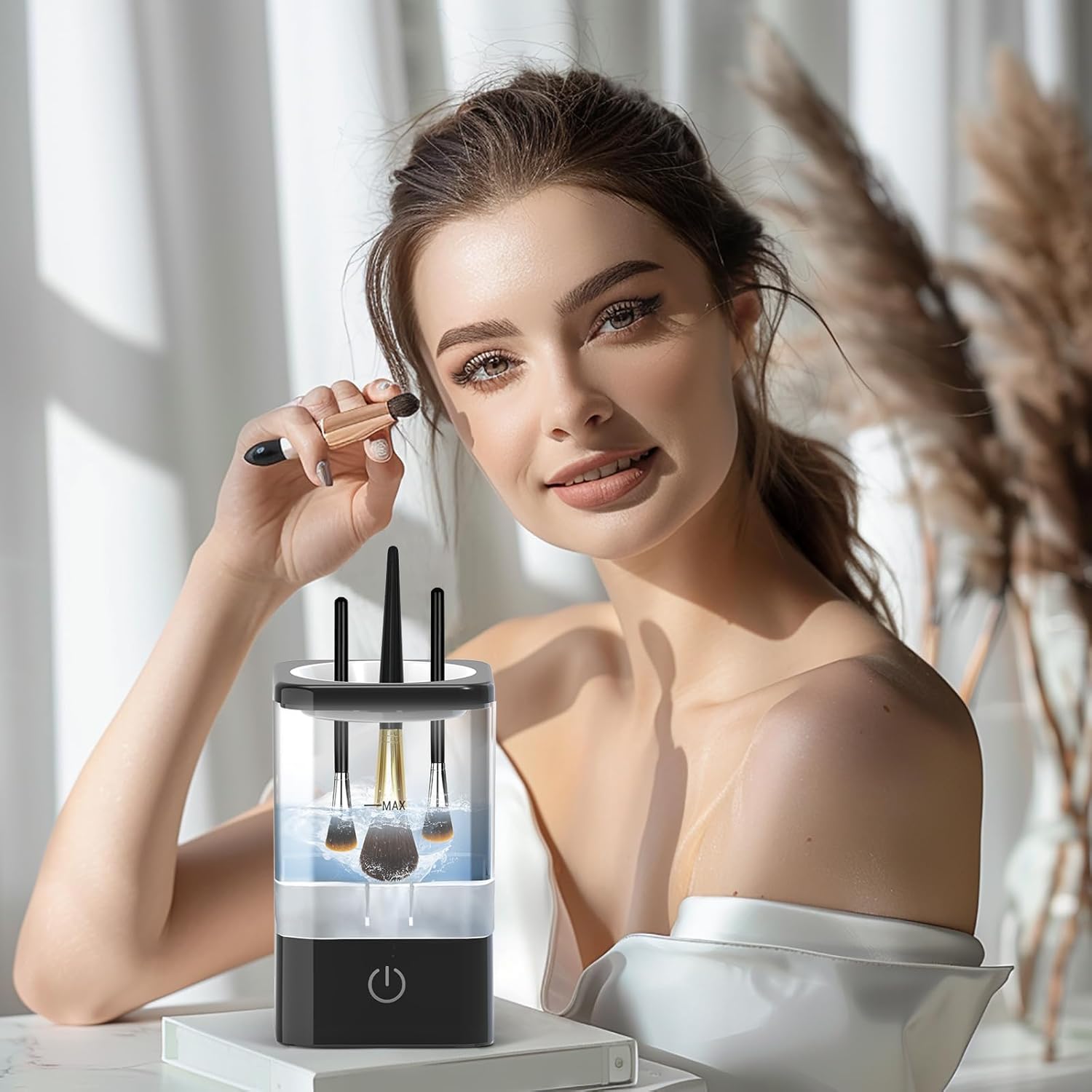 - 【New Upgrade 】This electric makeup brush cleaner can deeply clean your brushes without damaging it. Auto-spin is powerful yet gentle, gently and meticulously cleans each bristle. Cleaning all types of brushes in just minutes. It saves time and effort, ensuring your brushes are refreshed and ready for the next use.
