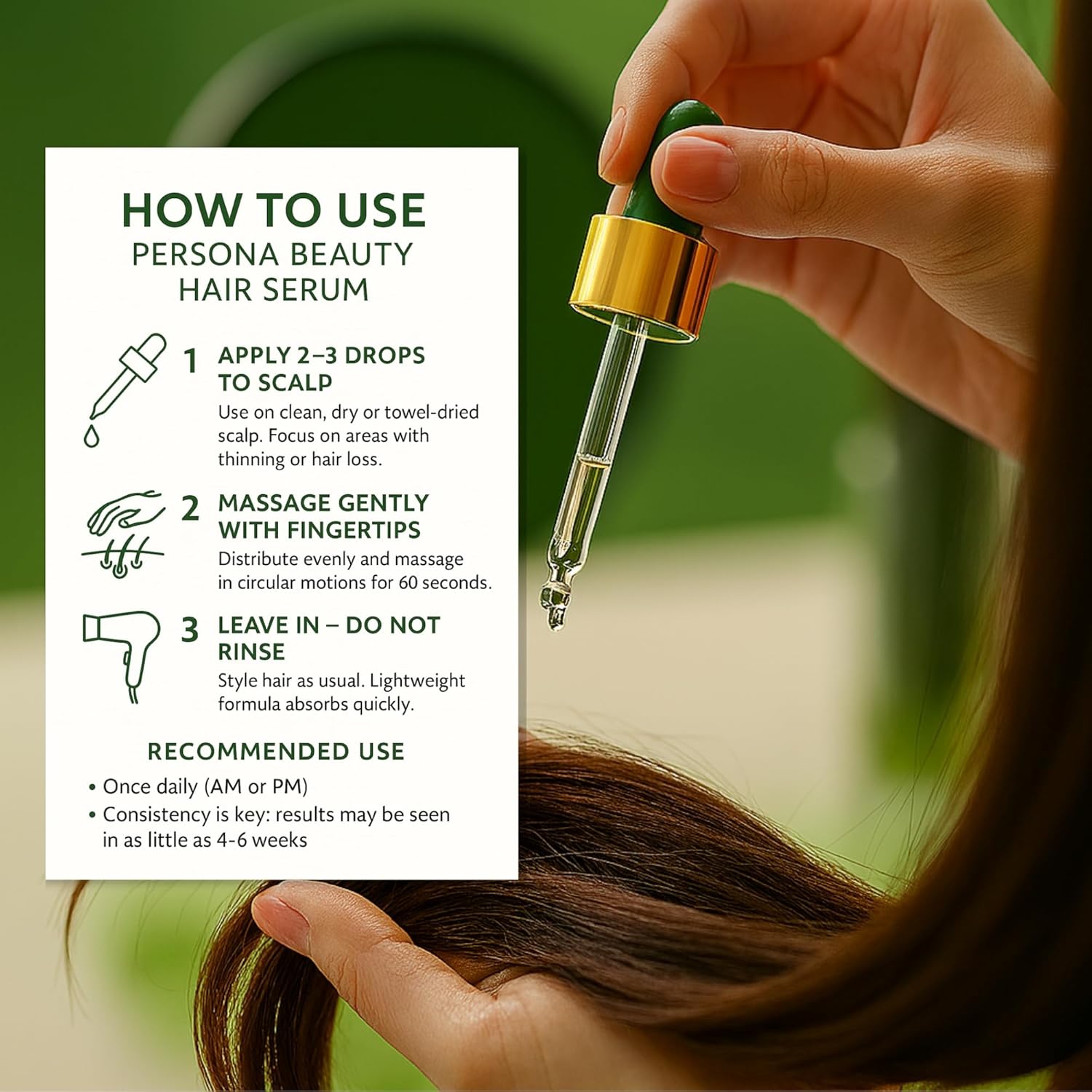 - β¨ Non-Greasy, Lightweight, Fast-Absorbing Serum That Feels Clean and Refreshing on the Scalp Unlike heavy oils or greasy treatments, Persona Beautyβs serum features a water-light, quick-absorbing consistency that delivers maximum nourishment with zero buildup. It wonβt weigh hair down or interfere with your styling routine, making it perfect for daily application. Suitable for oily, dry, or sensitive scalps seeking clean beauty solutions that donβt compromise performance or comfort.