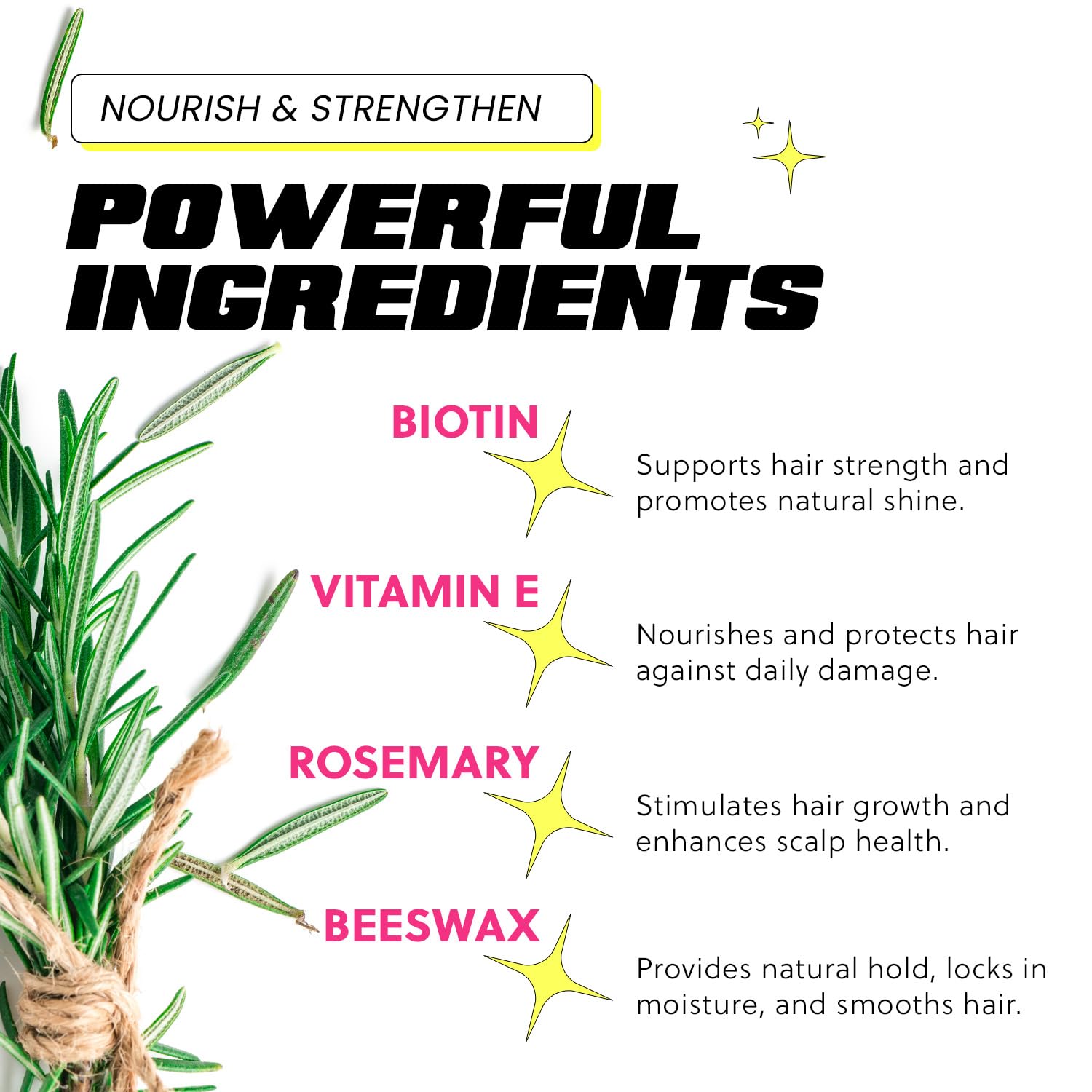 - Material Type Free : Biotin, Rosemary, Vitamin E