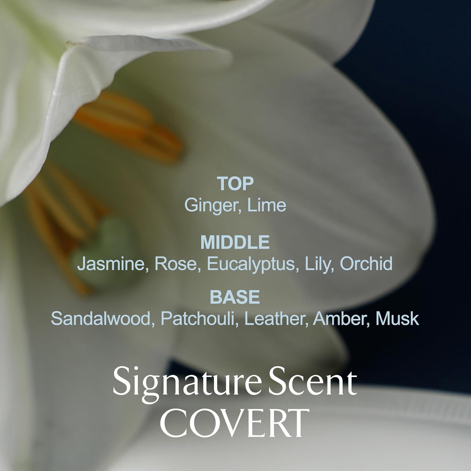 - 1.🌳 COVERT SCENT_DEEP WOODY AMBER: A deep floral musk with intense woody amber notes. The spicy vibrancy of ginger and lime adds a fresh edge, balanced by lush floral notes, musk, and amber for a sensual and longlasting impression.