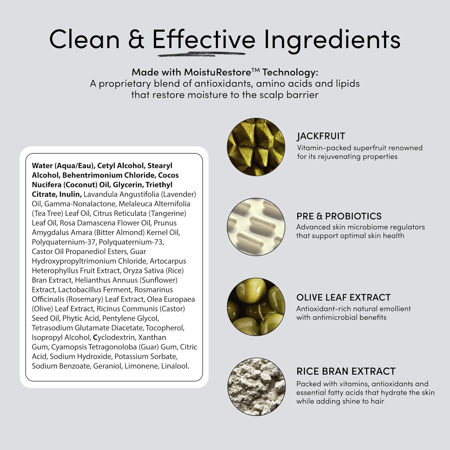 - EVERYDAY HYDRATION SHAMPOO & CONDITIONER: Powered by our exclusive MoistuRestore Technology, this shampoo and conditioner set deeply hydrates from root to tip, leaving hair soft, silky, and manageable. A blend of Tea Tree Oil, prebiotics, essential lipids, and proteins delivers lasting moisture while reducing breakage by over 82%.". Please ensure this is reflected in all products.