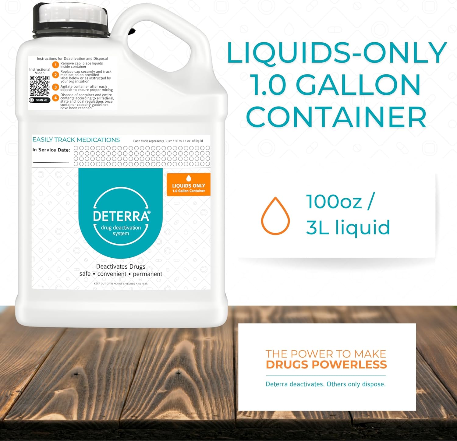 - Effective: The ONLY drug deactivation container scientifically proven to work. The drug deactivation container provides a safe, convenient and permanent disposal of unused, expired or unwanted liquid medications at home or in a clinical setting. Each container will deactivate and dispose of up to 100oz/3L of liquid at a time.
