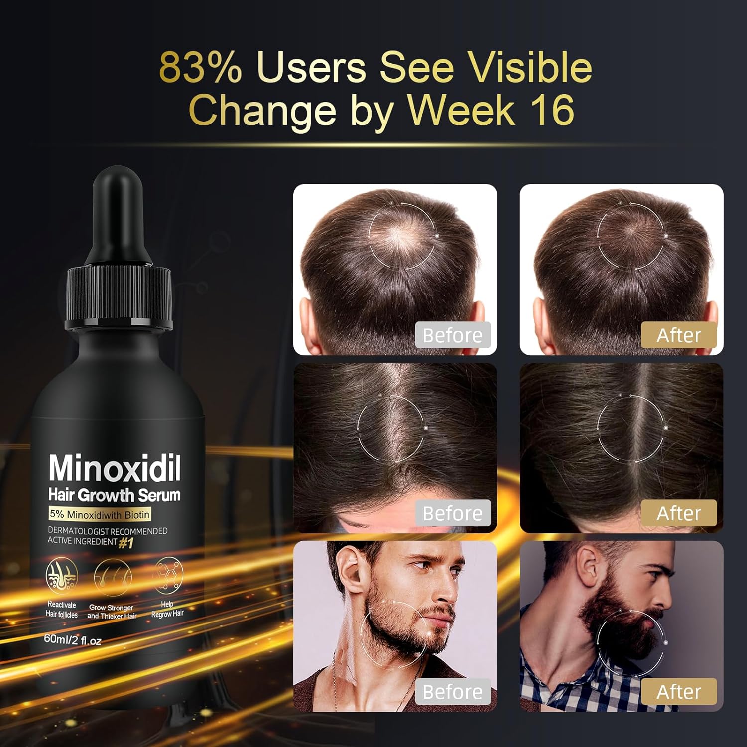 • BOOST YOUR CONFIDENCE WITH 5% MINOXIDIL: Our minoxidil for women and minoxidil for men hair is the #1 dermatologist-recommended treatment for hair loss. It strengthens hair follicles, reduces thinning, and accelerates natural regrowth. Whether you're dealing with a receding hairline, bald spots, or overall hair thinning, this formula works effectively. With regular use, you’ll notice stronger, healthier hair that helps you look and feel your best. If discontinued, regrown hair may gradually revert to its previous state.