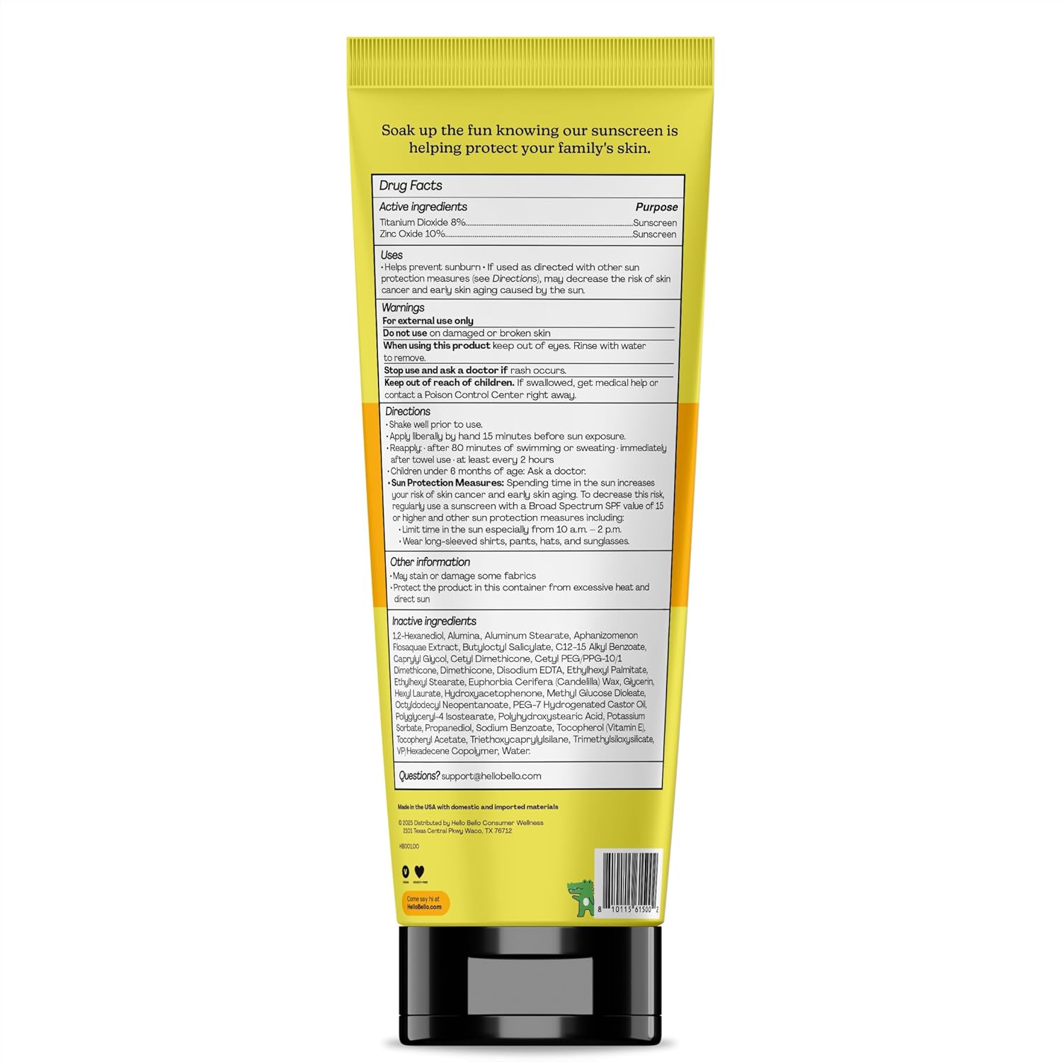 - POWERFUL MINERAL PROTECTION, NO CHEMICAL SUNSCREENS: Our Hello Bello Kids Mineral Sunscreen Lotion delivers robust SPF 50 Broad Spectrum UVA/UVB Protection using gentle Zinc Oxide (10%) and Titanium Dioxide (8%). Rest assured, our formula is free from harsh chemical sunscreens, creating a physical barrier on your child's skin to reflect harmful UV rays.