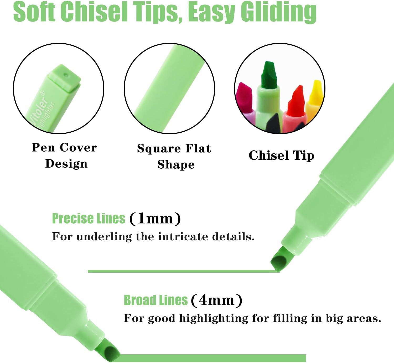 - Our aesthetic highlighters are comfortable and highlighters bulk easy to hold without a sore hand & don't roll around while using. The versatile chisel tip efficiently produces wide and narrow lines.
