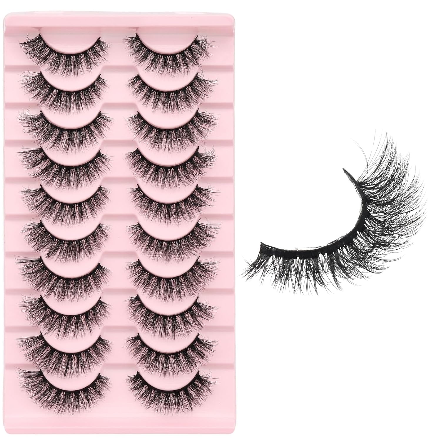 Cat Eye False Eyelashes – Natural Look, Wispy & Lightweight Glue-On Lashes, Reusable Fake Eyelashes for Everyday & Party Makeup (10 Pairs)