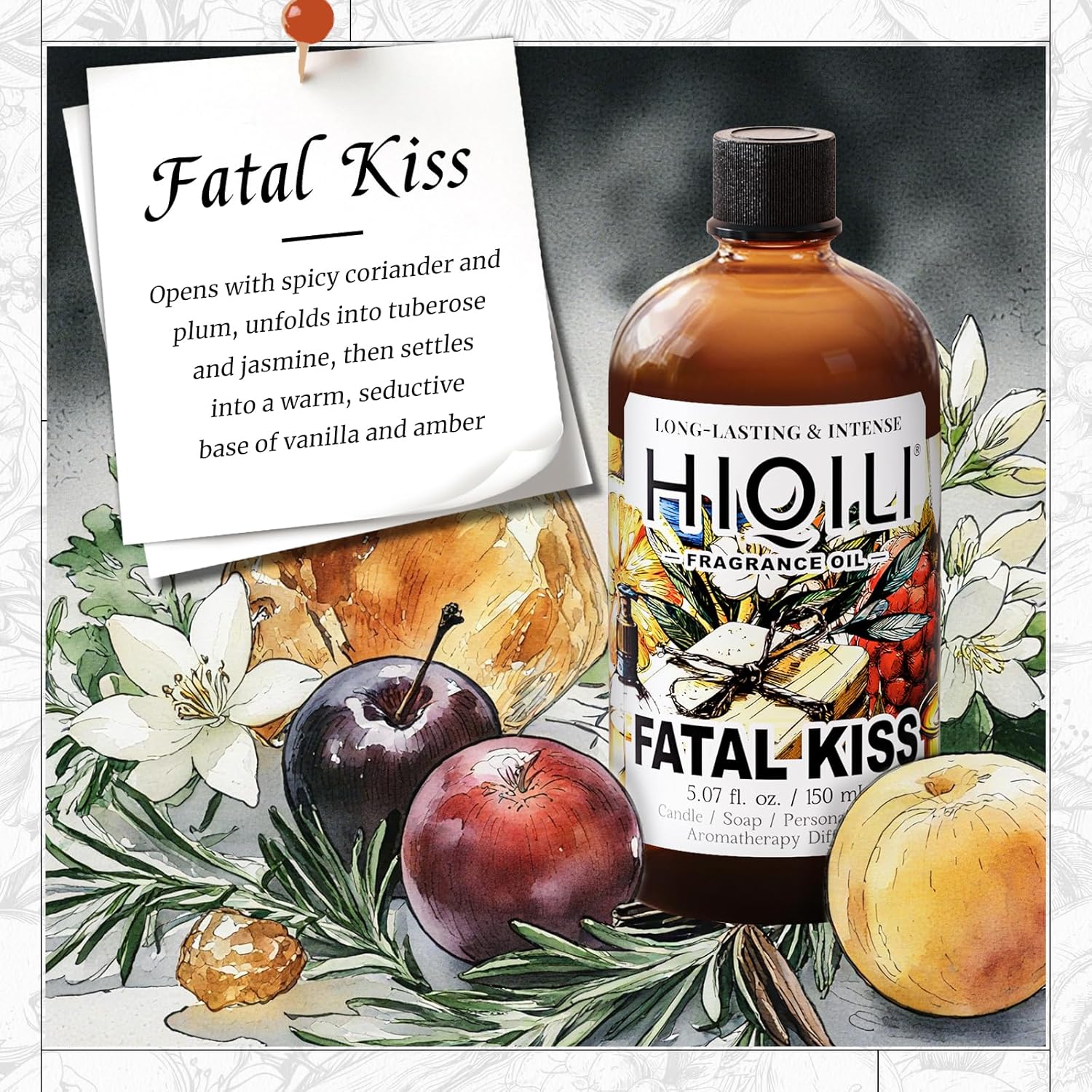 HIQILI Fatal Kiss Fragrance Oil, Tuberose & Plum Scents, for DIY Soap, Candle & Scented Sachets Making, Add to Shampoo & Laundry Detergent - 5.07 Fl Oz