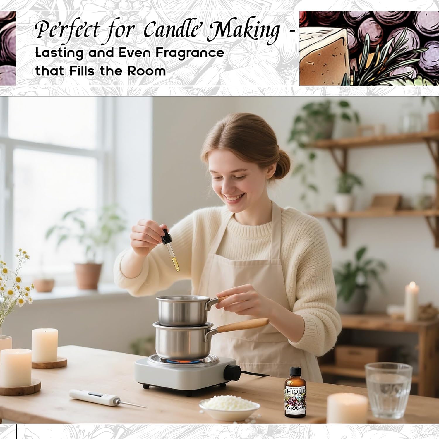 - Long-Lasting Fragrance: Made from top-grade, skin-friendly aroma compounds, this fragrance oil blends effortlessly into waxes, lotion, and bases — delivering a consistent, long-lasting scent in every homemade product
