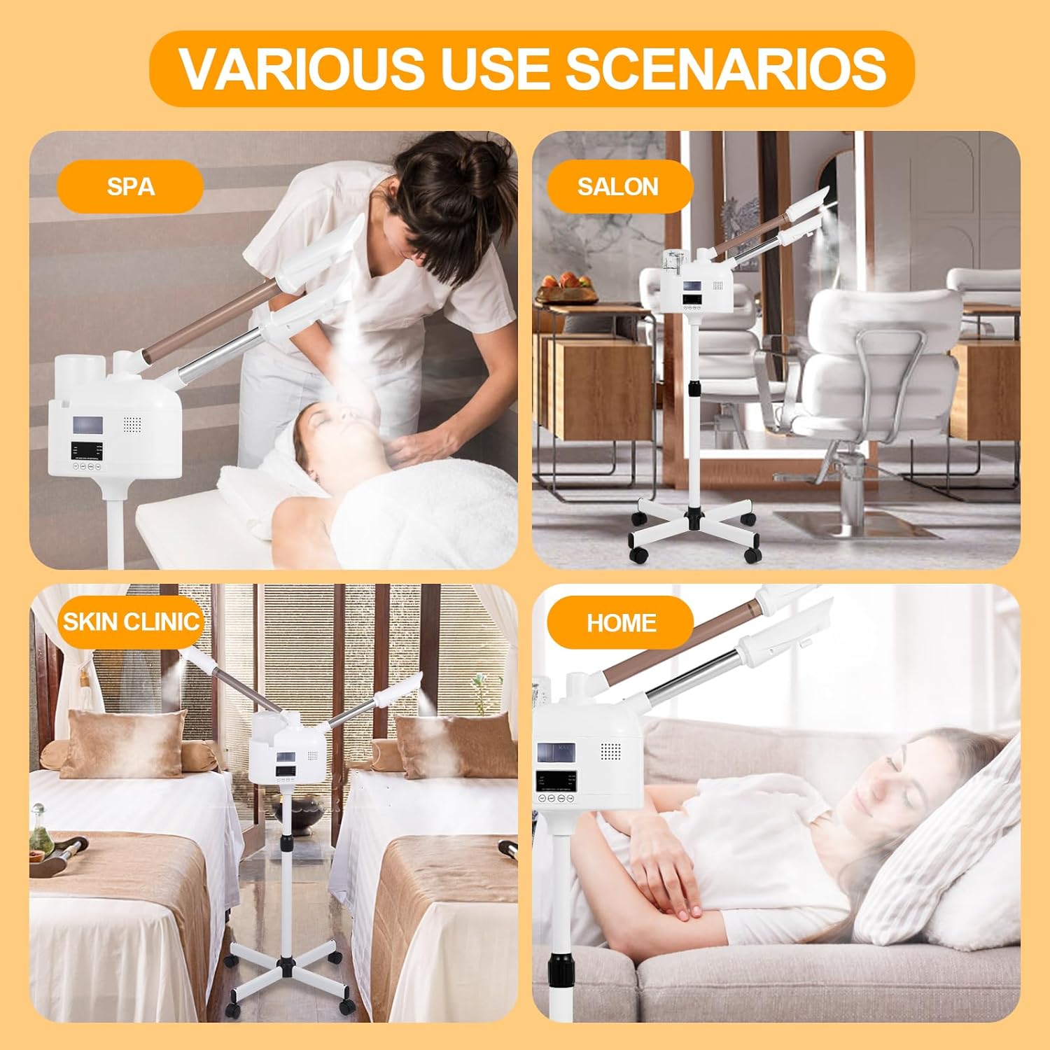 - 【Wide Use】Hot & cold mist 2-in-1 facial steamer designed for esthetician facial steamer and home users, perfect for beauty salon, spa, or other professional treatment places. Or you can use it at home, this facial steamer combines quality and simplicity, providing you a professional-level treatments at home.